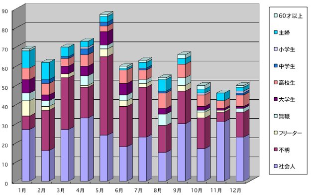 2012 (平成24) 年 メール相談者の年齢別グラフ